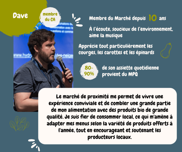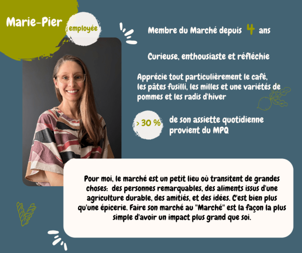 Découvrez des portraits de mangeurs et de l’équipe du Marché. Ces ambassadeurs, qui représentent toute la diversité des gens qui font vivre le Marché, y partagent ce qu’il représente pour eux mais aussi leurs produits préférés et la part de celui-ci dans leur assiette quotidienne.