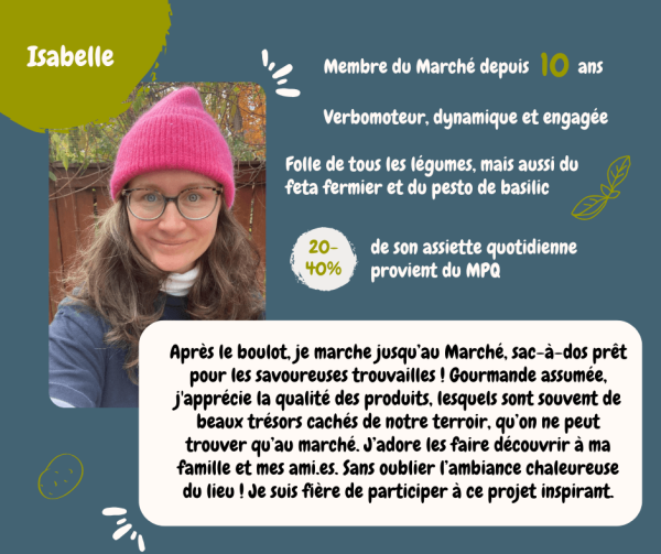 Découvrez des portraits de mangeurs et de l’équipe du Marché. Ces ambassadeurs, qui représentent toute la diversité des gens qui font vivre le Marché, y partagent ce qu’il représente pour eux mais aussi leurs produits préférés et la part de celui-ci dans leur assiette quotidienne.