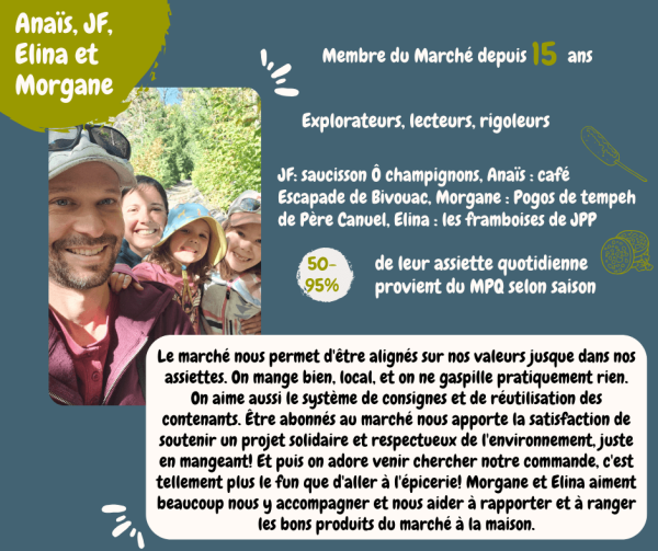Découvrez des portraits de mangeurs et de l’équipe du Marché. Ces ambassadeurs, qui représentent toute la diversité des gens qui font vivre le Marché, y partagent ce qu’il représente pour eux mais aussi leurs produits préférés et la part de celui-ci dans leur assiette quotidienne.